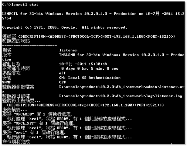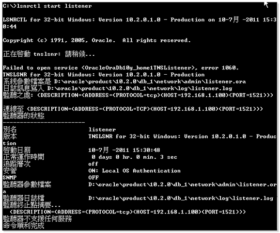 這樣以後開機LISTENER就會自己啟動,不用再自己下lsnrctl start listener 指令了
