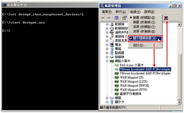 顯示隱藏的網卡。