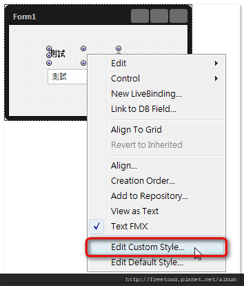 2.於TEDIT元件按右鍵,選「Edit Custom Style」。